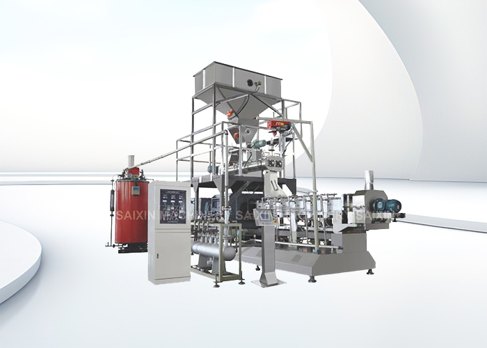濟(jì)南賽信機(jī)械有限公司系列大型雙螺桿擠壓膨化機(jī),是公司結(jié)合多年來(lái)膨化工藝研究的經(jīng)驗(yàn),為適應(yīng)日益發(fā)展的食品及相關(guān)行業(yè)的需求而設(shè)計(jì)制造的新型擠壓膨化設(shè)備。該擠壓膨化設(shè)備 采用高質(zhì)量標(biāo)準(zhǔn)生產(chǎn),關(guān)鍵零部件采用國(guó)外進(jìn)口。膨化機(jī)控制系統(tǒng)采用電腦程序,自動(dòng)化設(shè)計(jì),可根據(jù)加工產(chǎn)品的不同配方、水分、壓力、溫度等進(jìn)行參數(shù)設(shè)定,工作過(guò)程簡(jiǎn)單可靠,被機(jī)電部食品和包裝協(xié)會(huì)推薦為名優(yōu)食品機(jī)械。系列雙螺桿膨化機(jī)由供料系統(tǒng)、擠壓系統(tǒng)、旋切系統(tǒng)、加熱系統(tǒng)、冷卻系統(tǒng)、傳動(dòng)系統(tǒng)、控制系統(tǒng)組成;只需設(shè)定好生產(chǎn)參數(shù)即可自動(dòng)化連續(xù)生產(chǎn)無(wú)需人工調(diào)整。該機(jī)適用原料廣泛:玉米粉、大米粉、小麥粉、綠豆粉、紅薯粉、肉粉、魚粉及各種淀粉皆可作為原料擠壓膨化,通過(guò)設(shè)定不同的生產(chǎn)工藝參數(shù)即可調(diào)整產(chǎn)品的質(zhì)地和膨化狀態(tài);更換螺桿或模具即可生產(chǎn)出不同形狀的產(chǎn)品,很大程度滿足您對(duì)產(chǎn)品的生產(chǎn)要求。