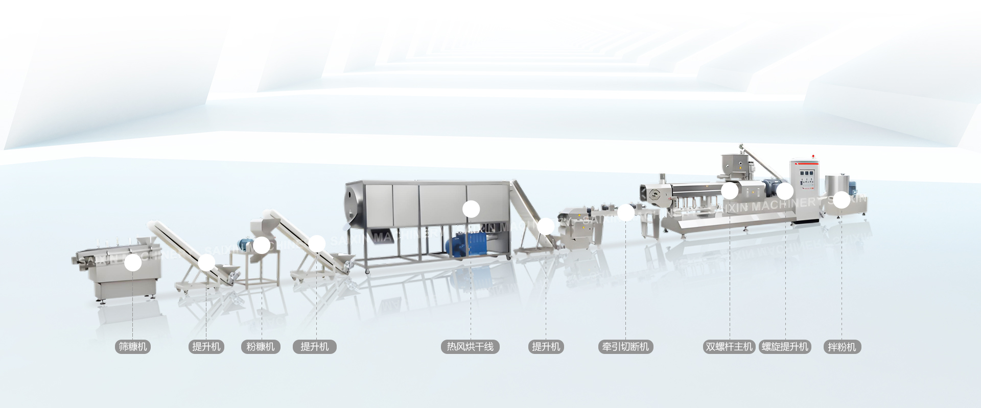 該生產(chǎn)線集成了全自動(dòng)化電氣裝置,涵蓋了從原料攪拌、膨化、切斷到干燥、破碎和篩選的各個(gè)環(huán)節(jié),確保生產(chǎn)流程的穩(wěn)定。設(shè)備結(jié)構(gòu)合理,操作簡便,有助于提高生產(chǎn)效率并降低人工成本。