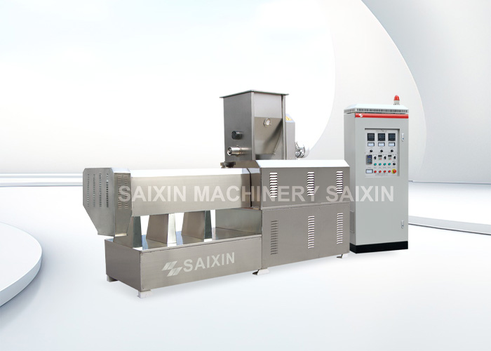 濟南賽信機械有限公司生產(chǎn)的雙螺桿擠壓膨化機,是公司結(jié)合多年來膨化工藝研究的經(jīng)驗,為適應日益發(fā)展的食品及相關行業(yè)的需求而設計制造的新型擠壓膨化設備。該擠壓膨化設備 采用國標生產(chǎn),關鍵零部件采用國外進口。膨化機控制系統(tǒng)采用電腦程序,自動化設計,可根據(jù)加工產(chǎn)品的不同水分、壓力、溫度等進行參數(shù)設定,工作過程簡單可靠,被機電部食品和包裝協(xié)會推薦為名優(yōu)食品機械。系列雙螺桿膨化機由供料系統(tǒng)、擠壓系統(tǒng)、旋切系統(tǒng)、加熱系統(tǒng)、冷卻系統(tǒng)、傳動系統(tǒng)、控制系統(tǒng)組成;只需設定好生產(chǎn)參數(shù)即可自動化連續(xù)生產(chǎn)無需人工調(diào)整。該機適用原料廣泛:玉米粉、大米粉、小麥粉、綠豆粉、紅薯粉、肉粉、魚粉及淀粉皆可作為原料擠壓膨化,通過設定不同的生產(chǎn)工藝參數(shù)即可調(diào)整產(chǎn)品的質(zhì)地和膨化狀態(tài);更換螺桿或模具即可生產(chǎn)出不同形狀的產(chǎn)品,滿足您對產(chǎn)品的生產(chǎn)要求。