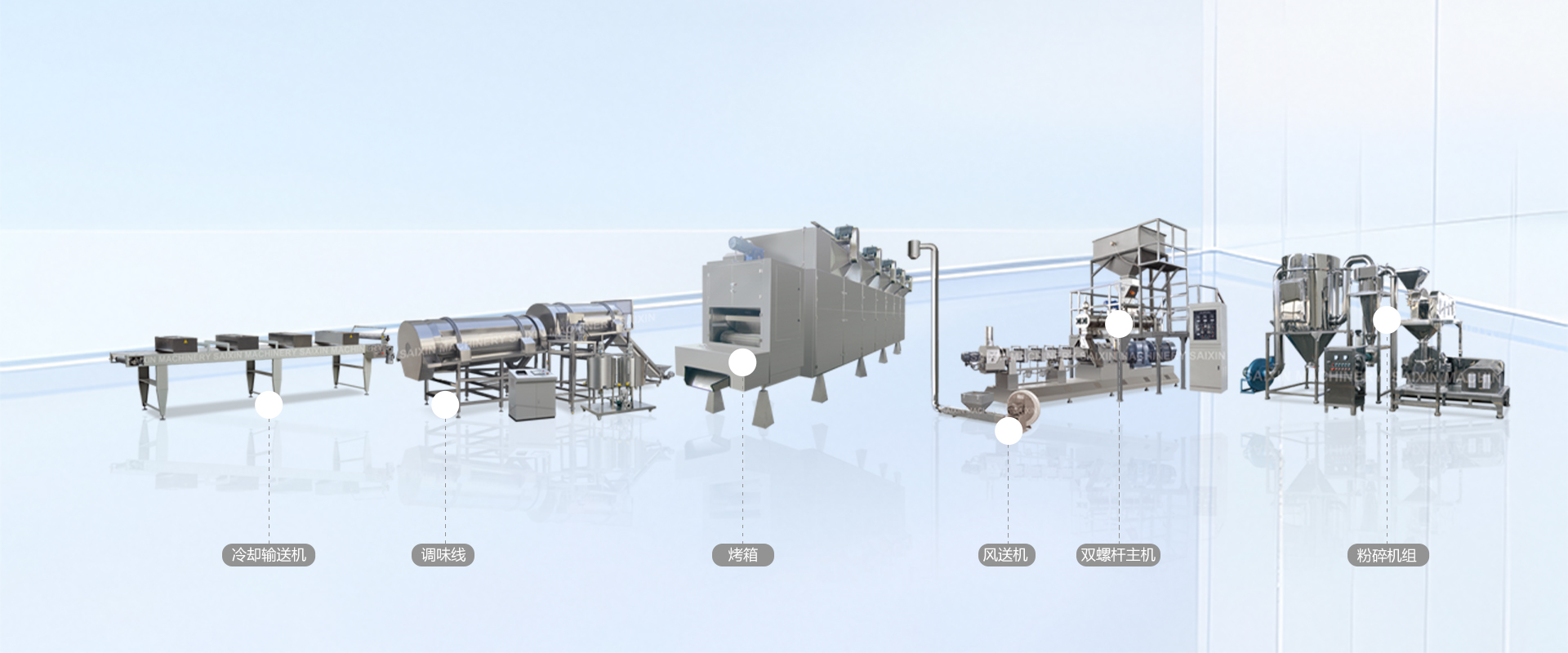 異寵飼料生產(chǎn)線由拌粉機(jī)、雙螺桿擠出機(jī)、風(fēng)送機(jī)、烘干機(jī)、調(diào)味線等設(shè)備組成,操作簡便,易于學(xué)習(xí),并可通過準(zhǔn)確的參數(shù)控制,使產(chǎn)品在適宜的溫度、壓力、濕度和時(shí)間條件下完成生產(chǎn)。該生產(chǎn)線采用合理的結(jié)構(gòu)設(shè)計(jì),結(jié)合特定材質(zhì),具備自潔性能,有助于設(shè)備的穩(wěn)定運(yùn)行和便捷維護(hù)。