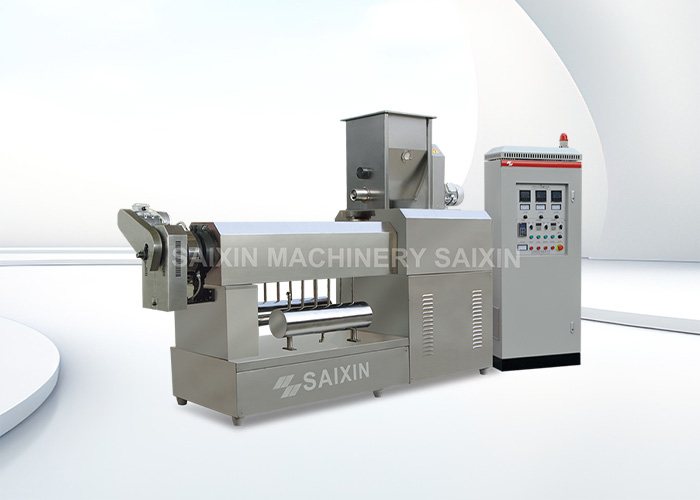 該機(jī)適用原料廣泛,生產(chǎn)產(chǎn)品種類多樣,變頻調(diào)速,自動(dòng)化程度高,運(yùn)行平穩(wěn),使用壽命長(zhǎng)。可以生產(chǎn)各種面食及淀粉類產(chǎn)品,一次性熟化成型,操作簡(jiǎn)便,通常被用于蝦條,妙脆角,薯?xiàng)l,薯片,通心面等食品的擠壓成型和熟化,也可用于寵物咬膠產(chǎn)品的擠壓成型。生產(chǎn)出的產(chǎn)品外表細(xì)膩,形狀規(guī)整,市場(chǎng)前景廣闊。
