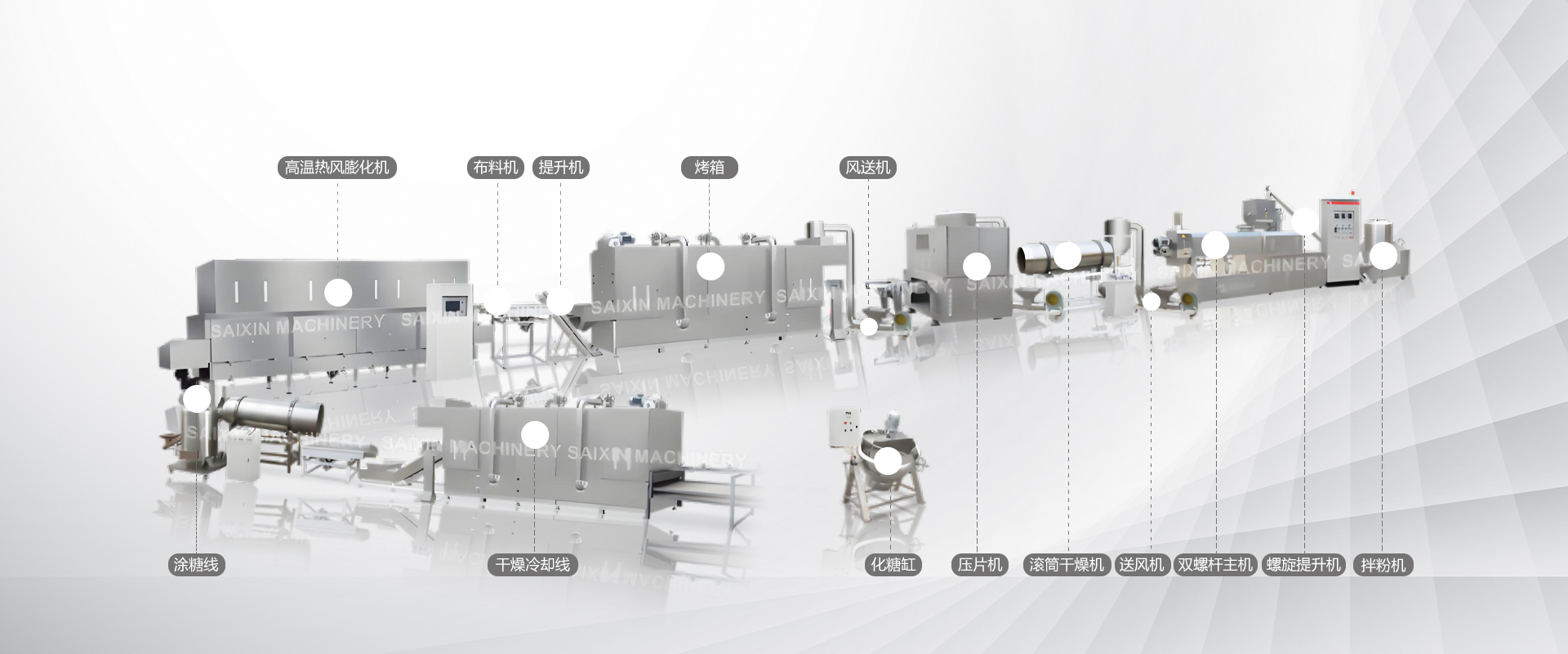 濟(jì)南賽信機(jī)械有限公司研發(fā)的谷物早餐生產(chǎn)線以玉米粉、燕麥粉等谷物類原料為基礎(chǔ),經(jīng)過膨化機(jī)擠壓成粒狀、圈狀或小顆粒形態(tài)。產(chǎn)品可直接進(jìn)行烘干,制成谷物早餐;也可通過壓片、干燥及高溫二次膨化等多重工序,制成玉米片、麥片等片狀谷物早餐食品。